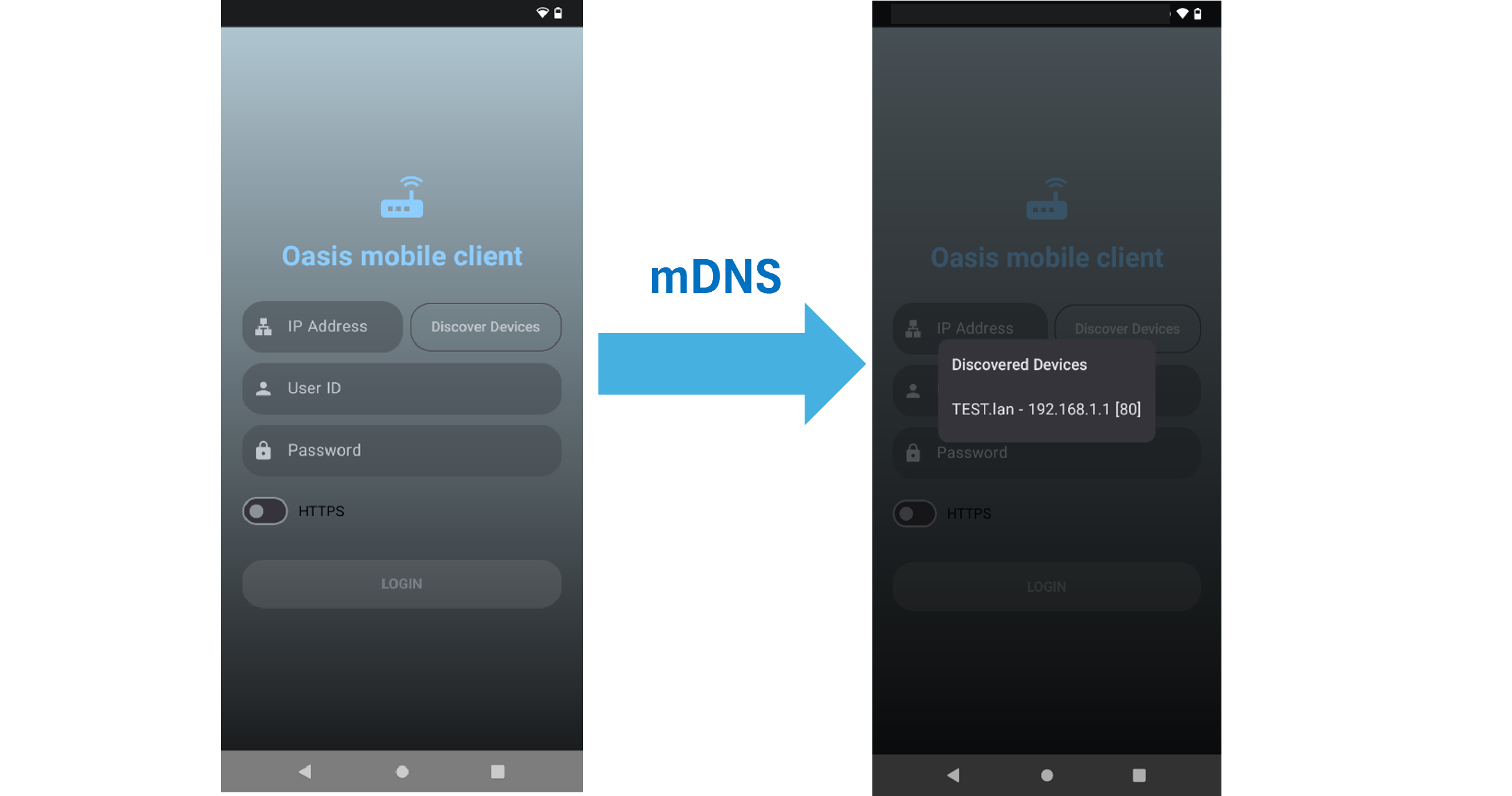 OpenWrtデバイスのIPアドレスとユーザーID、パスワードを入力することでログインができます。 予めOpenWrtデバイス側でavahi-daemonが有効あればmDNSによる探索によってIPアドレスを自動設定することも可能です。